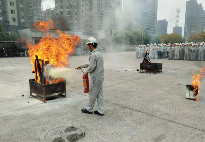 紧急避难演习后,公司安全管理员首先介绍了消防栓、消防扳手、消防水带、消防喷头的使用、连接方法,并安排专人进行示范操作同时,对公司消防水压是否正常进行了实际测试。随后,还着重对二氧化碳干粉灭火器使用的动作要领、注意事项进行了说明和培训,并组织15名现场员工进行了灭火“实战”体验训练。