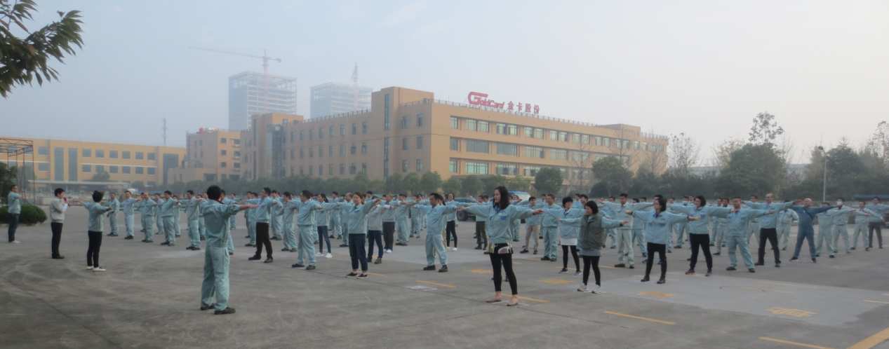 为增强员工体质,减少工伤事故的发生,2016年11月7日,公司开始正式导入第9套广播体操。 7:40分左右,大家陆续赶到指定位置集合、列队、点名。7:50分广播体操正式开始,考虑到大家都还不会做操,公司安排了四位员工教练给大家讲解,示范,通过10分钟的学习,大部分员工基本掌握了第一节(伸展运动)、第二节(扩胸运动)的动作要领和要求。